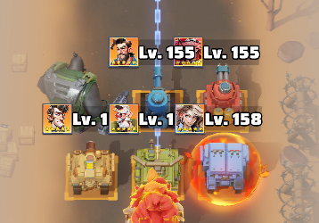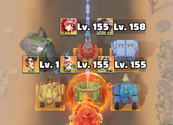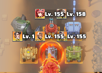 * this setup is the best allrounder. The defense buff from scarlett lands on marshall while kim and stateman focus their firepower on the right side of the enemy team. It's great at busting missle teams with swift infront, better than the standard tank setup with all attackers in the back.
